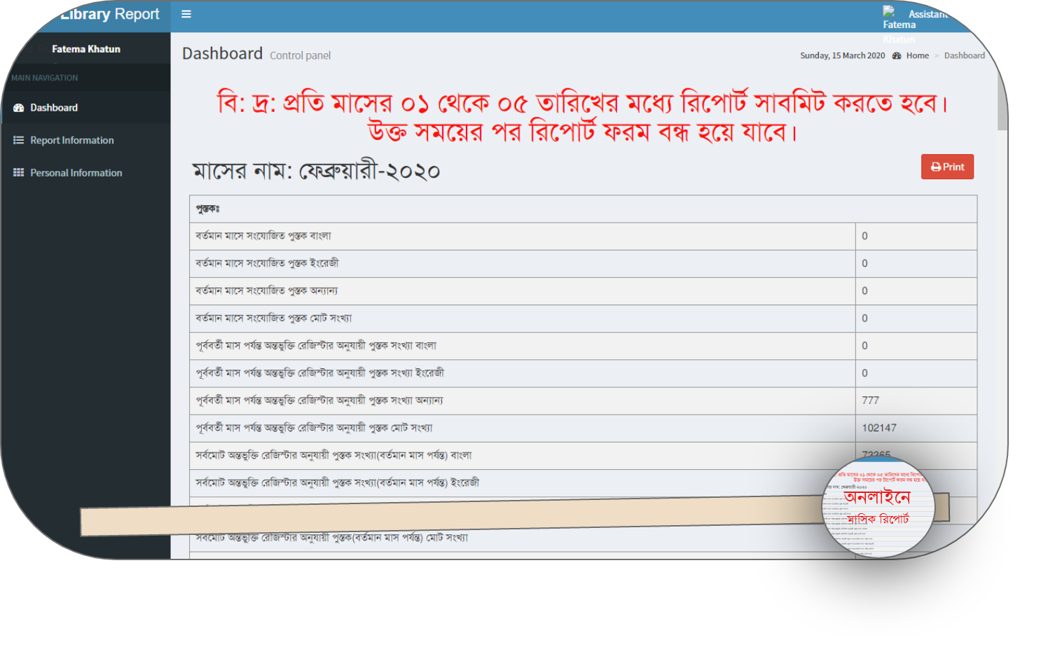 | ১। | ৭১ টি সরকারি গণগ্রন্থাগারের মাসিক কার্যবিবরনী অনলাইনে সদর দপ্তরে প্রেরণ | ম্যানুয়্যালে প্রেরণ করা | অনলাইনে প্রেরণ করা হয়